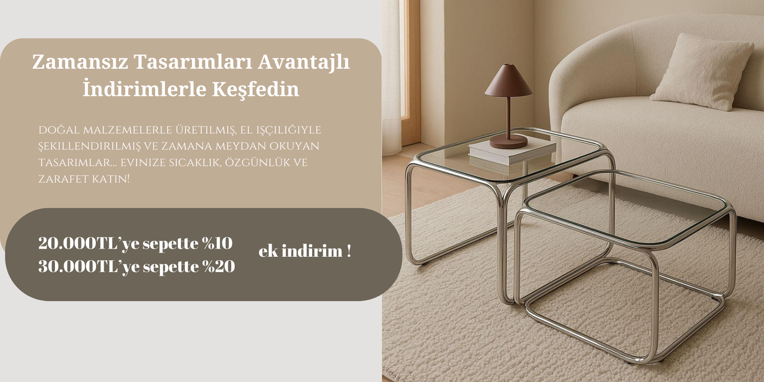 EVINIZI, DOGANIN EN SAF DOKUNUSLARIYLA SEKILLENDIRIN. SOHOMANJE'NIN DOGAL MALZEMELERLE ÜRETILMIS, ESTETIK VE iŞLEVSELLiĞİ BULUSTURAN MOBILYALARIYLA TANISIN.