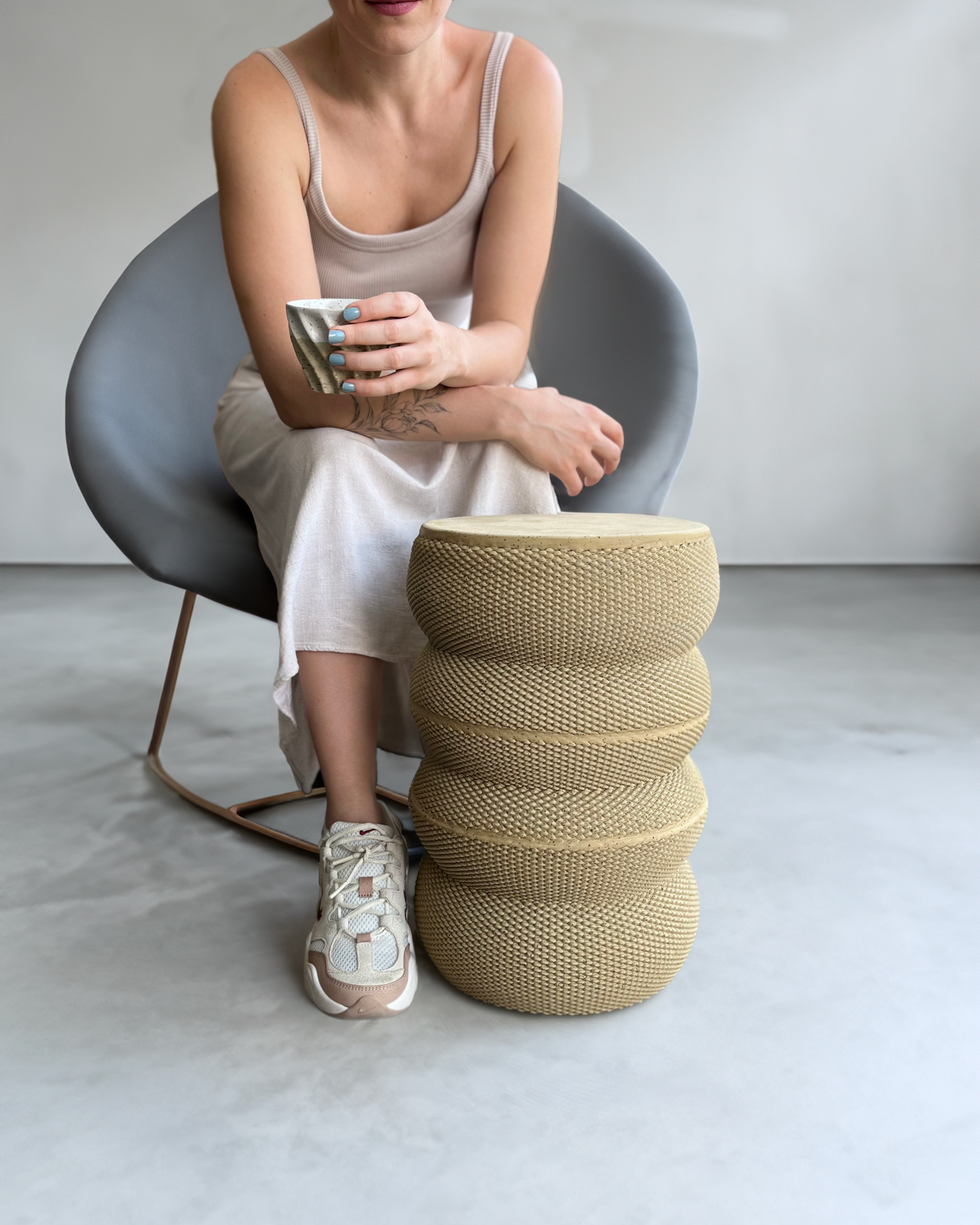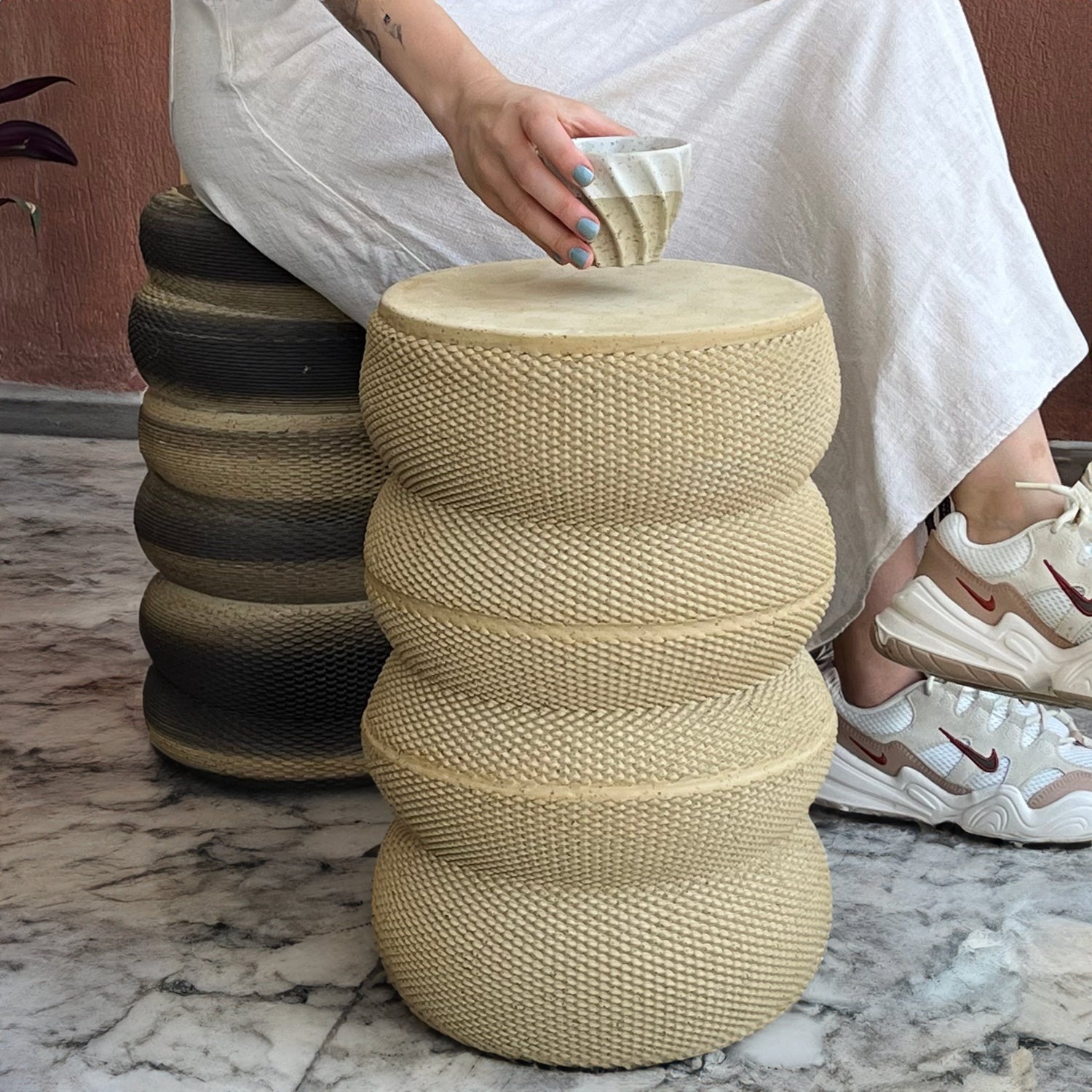 Geleneksel seramik işçiliğini modern teknolojiyle buluşturan bu tabureler, 3D yazıcı ile üretilerek zamansız bir tasarım sunuyor. Hem estetik hem de fonksiyonel olan bu ürün, yan sehpa olarak kullanılabileceği gibi, dayanıklılığı sayesinde oturmak için de idealdir. Doğal malzemelerle üretilen seramik tabureler, minimal ve şık tasarımlarıyla her yaşam alanına sofistike bir dokunuş katıyor. Yenilikçi üretim süreci sayesinde her bir parça, incelikle ve yüksek hassasiyetle şekillendirilmiştir.