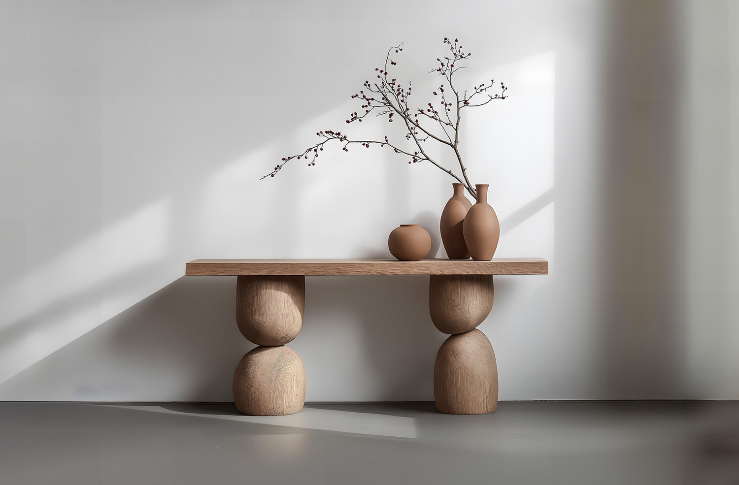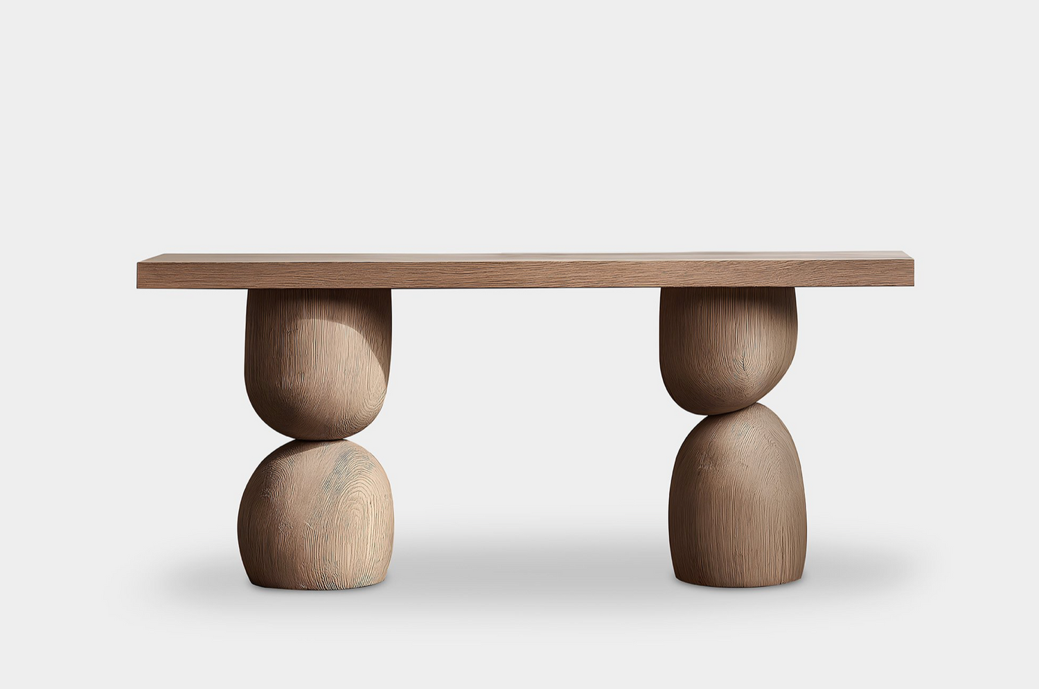 Sanatla işlevselliğin zarif bir birlikteliği. “Denge” konsolumuz, heykelsi ayak formu ve koyu tonlu doğal ahşap dokusuyla mekâna güçlü ama sade bir ifade kazandırır. Klasik çizgilerin dışına çıkan kavisli formlarıyla hem heykelsi hem de mimari bir duruş sergiler.