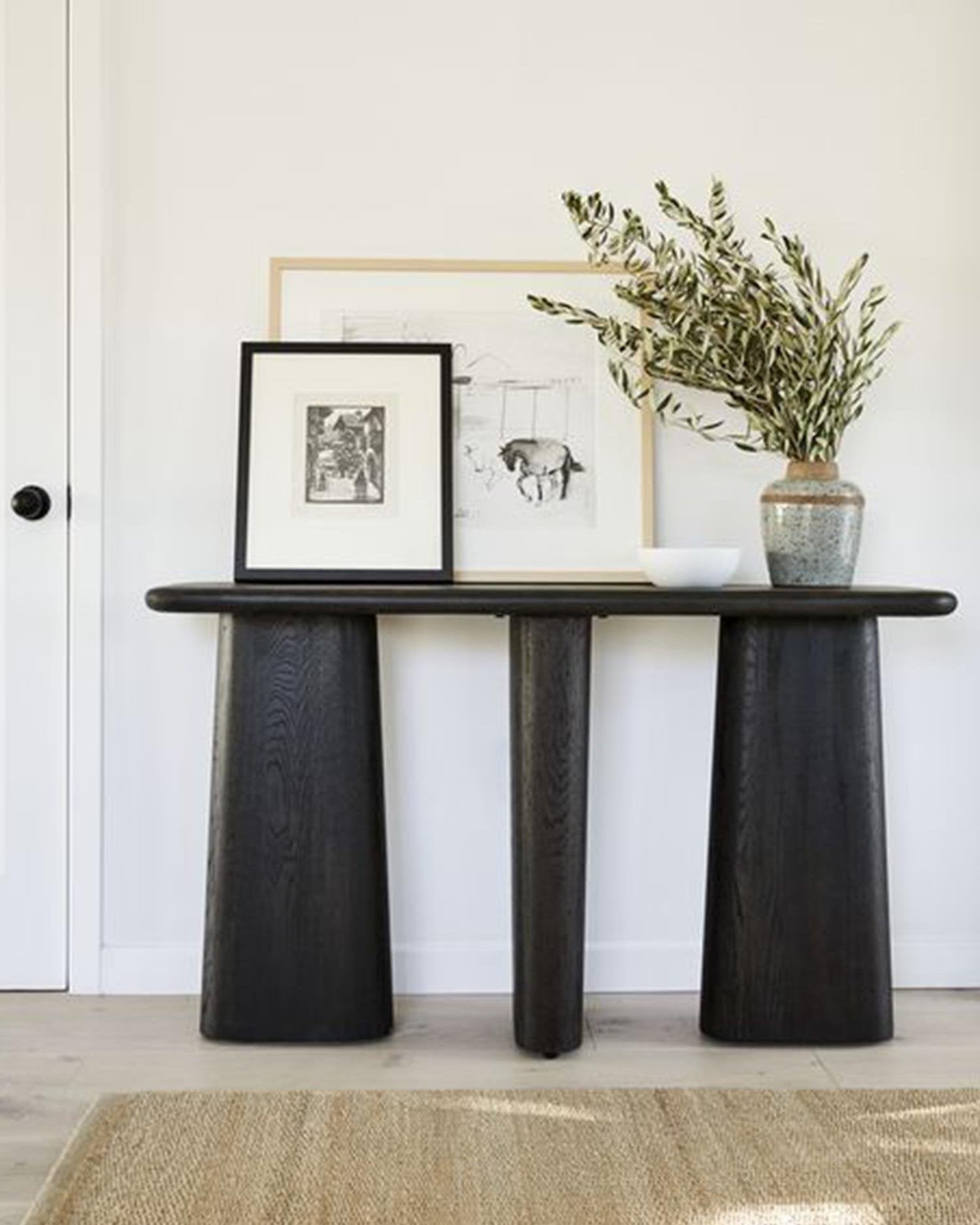 Doğal çam masif panel kullanılarak üretilen bu konsol, zarif tasarımıyla dikkat çeker.