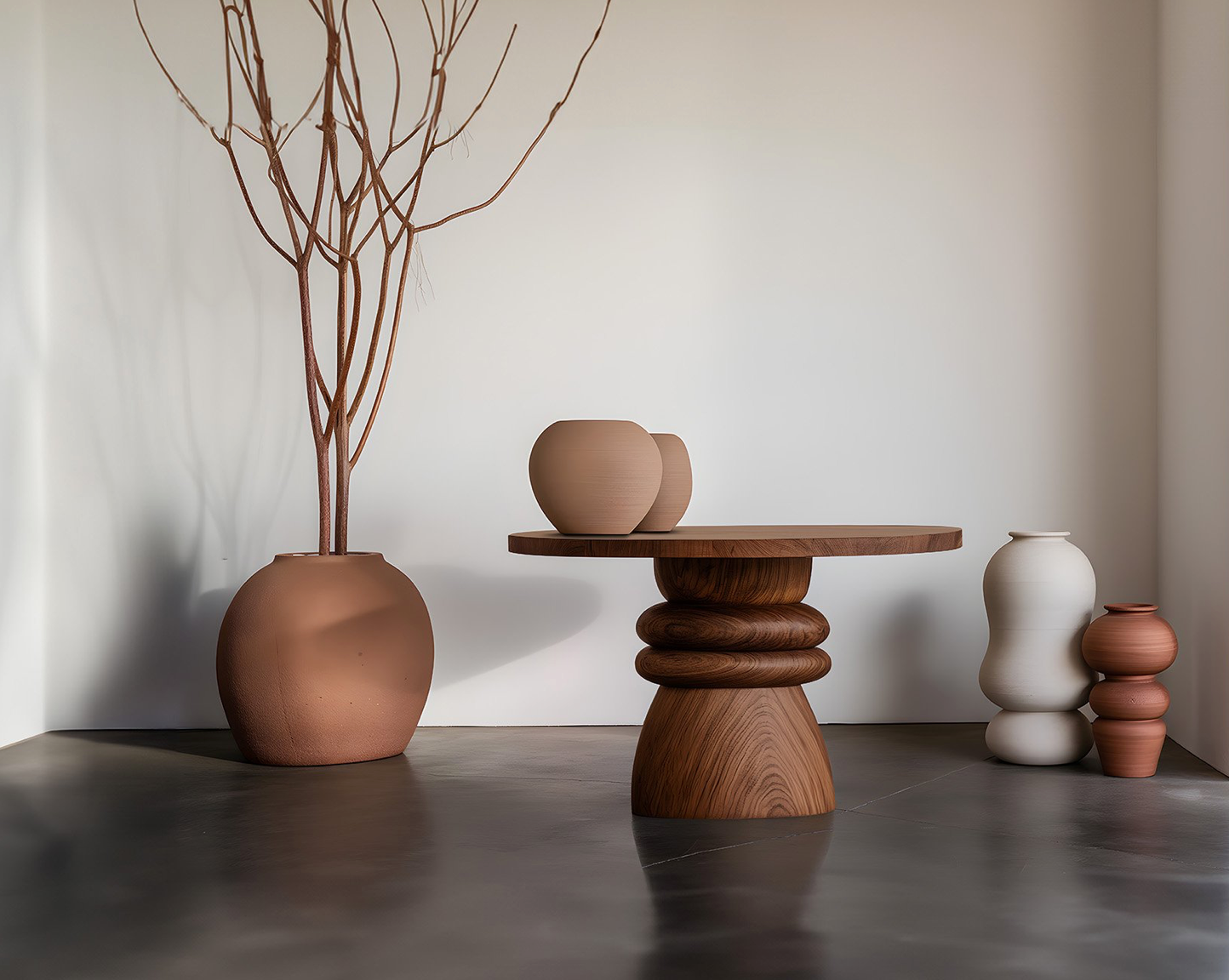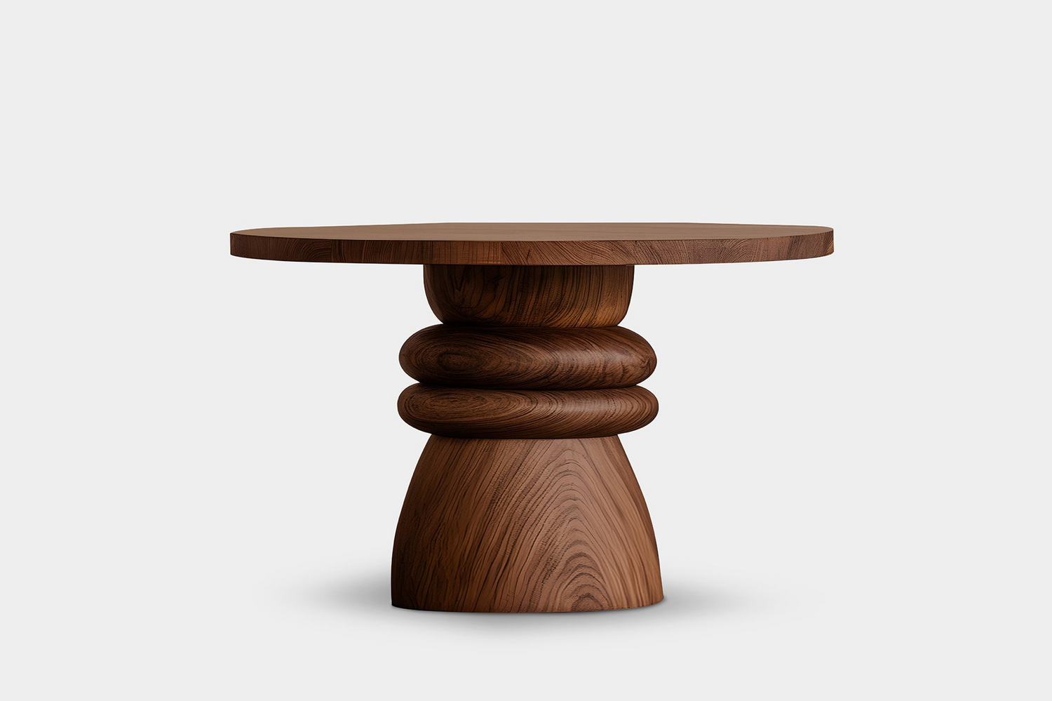 Organik kıvrımları ve katmanlı siluetiyle dikkat çeken Totem masa, sadece bir mobilya değil, aynı zamanda mekânda bir odak noktasıdır. Masif ahşaptan üretilen bu özel parça, zamansız bir duruşla modern yaşam alanlarına karakter katar.