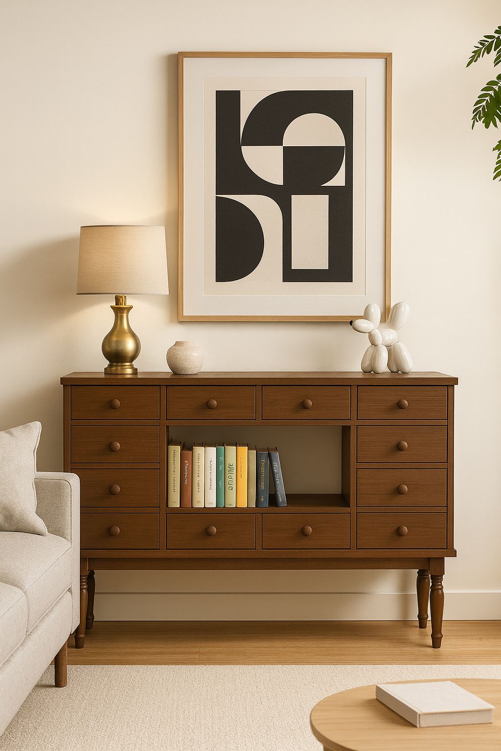 Doğal ahşabın sıcaklığını ve kaliteli el işçiliğini yaşam alanlarınıza taşıyan bu özel konsol, mekanınıza hem fonksiyon hem de karakter katar.
