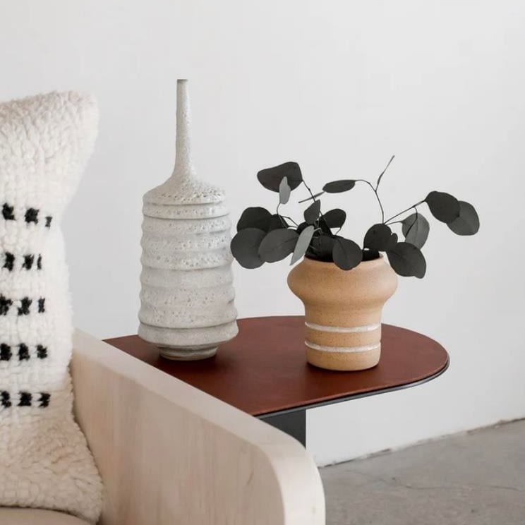 Modern tasarımın zarif detaylarla buluştuğu Deri Detaylı Metal Yan Sehpa, yaşam alanlarınıza hem işlevsellik hem de estetik bir dokunuş katıyor.
