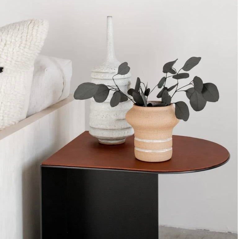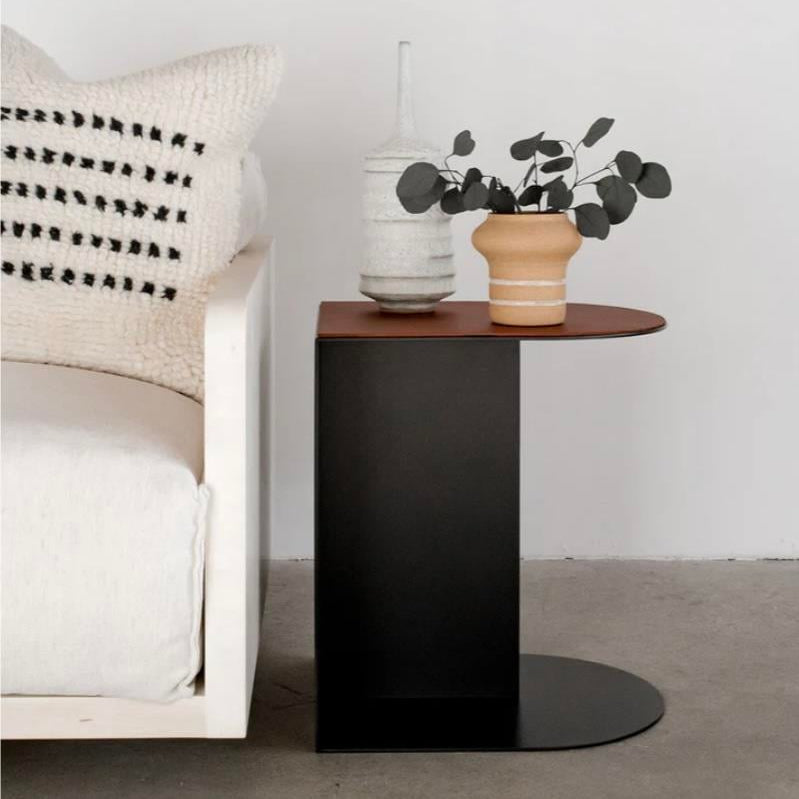 Bu özel tasarım yan sehpa, dayanıklı metal iskeletiyle uzun ömürlü bir kullanım sunarken, deri detayları sayesinde lüks bir görünüm sağlar. Minimalist çizgilere sahip şık tasarımı sayesinde oturma odası, yatak odası veya çalışma alanlarında mükemmel bir tamamlayıcı mobilya olarak kullanılabilir.