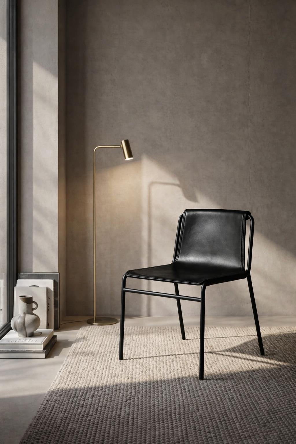 Dayanıklılık: Siyah fırın boyalı metal iskelet ve gerçek deri kaplama uzun ömürlü kullanım sunar.