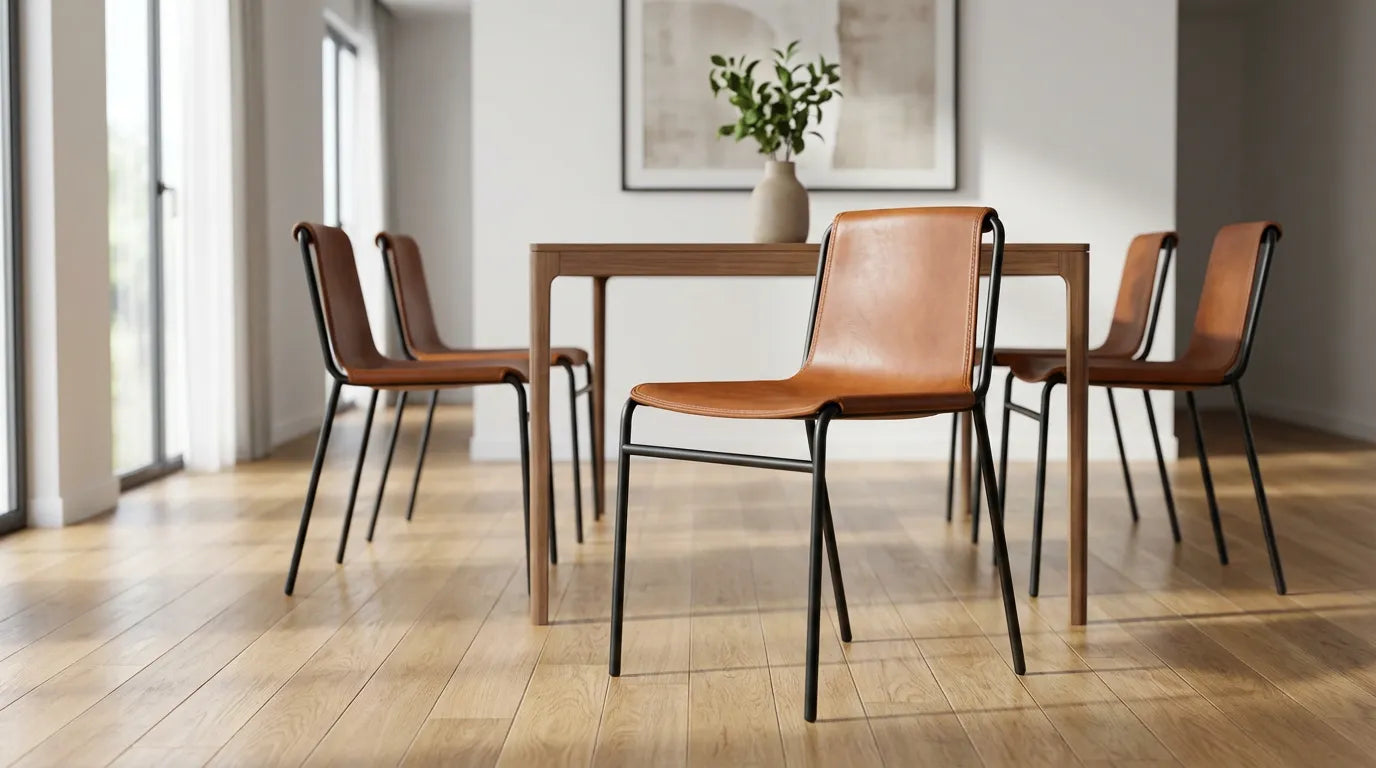 Yemek alanınızı modern ve zarif bir görünüme kavuşturacak olan Soho 649 Kızıl Kahve Deri Yemek Sandalyesi, siyah fırın boyalı metal iskeleti ve kızıl kahve/siyah tonlarında gerçek deri oturumuyla öne çıkar. Hem estetik hem de dayanıklılık açısından güçlü bir seçenektir.