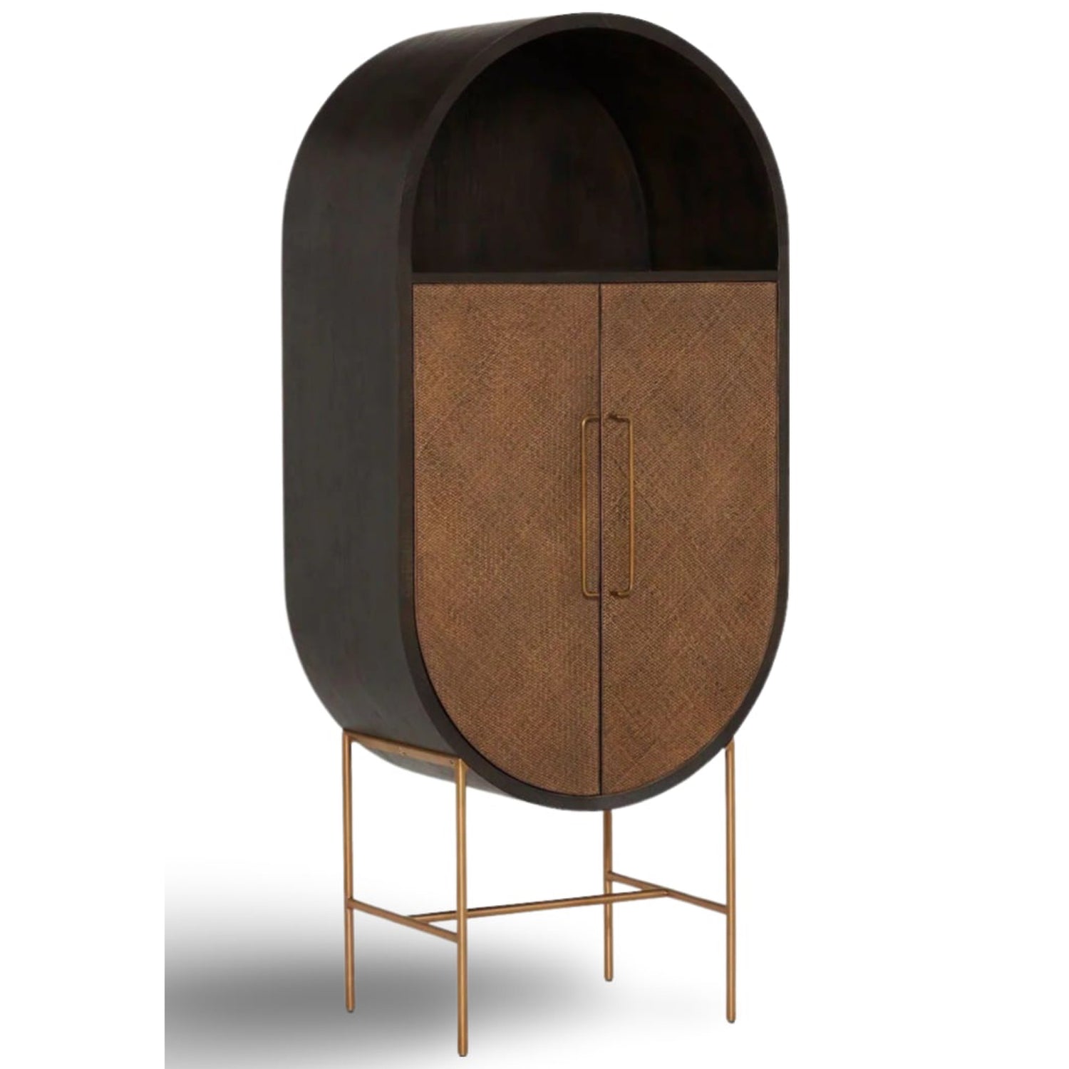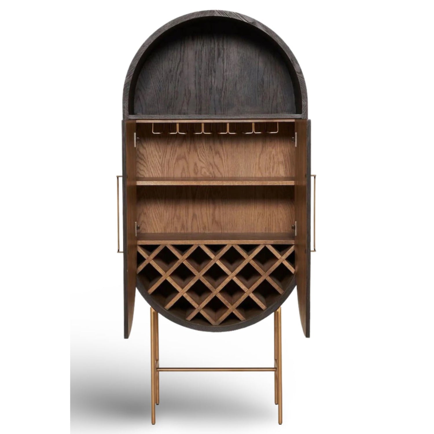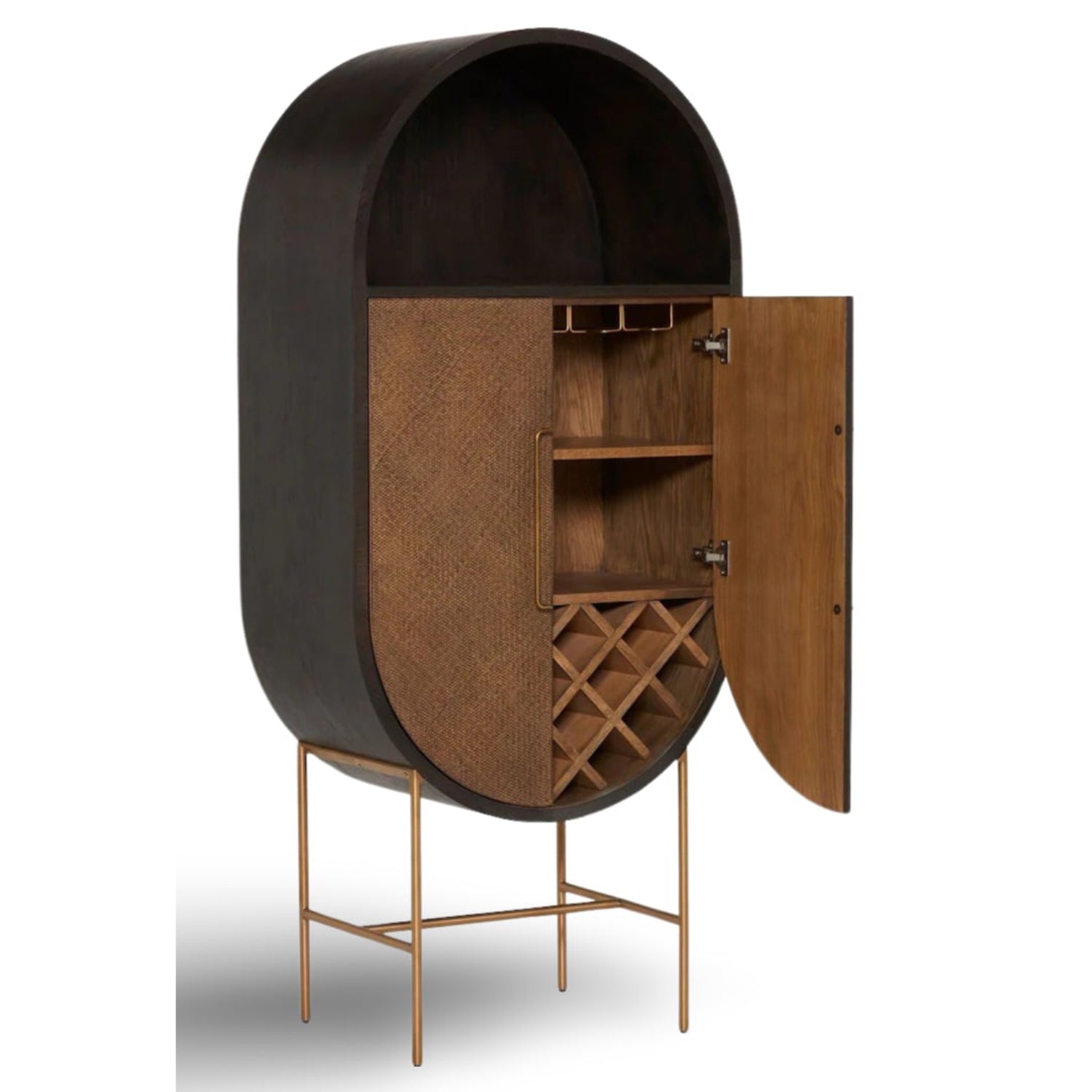 Doğal ahşaptan el yapımı olarak üretilen bu içki dolabı, zarafeti ve işlevselliği bir araya getiriyor. Kavisli üst yapısı ve özenle işlenmiş detayları, dolaba sofistike bir görünüm kazandırıyor. İç kısmında bulunan raflar ve özel olarak tasarlanmış bardak asma bölümleri, içki koleksiyonunuzu sergilemeniz için ideal bir alan sunuyor.