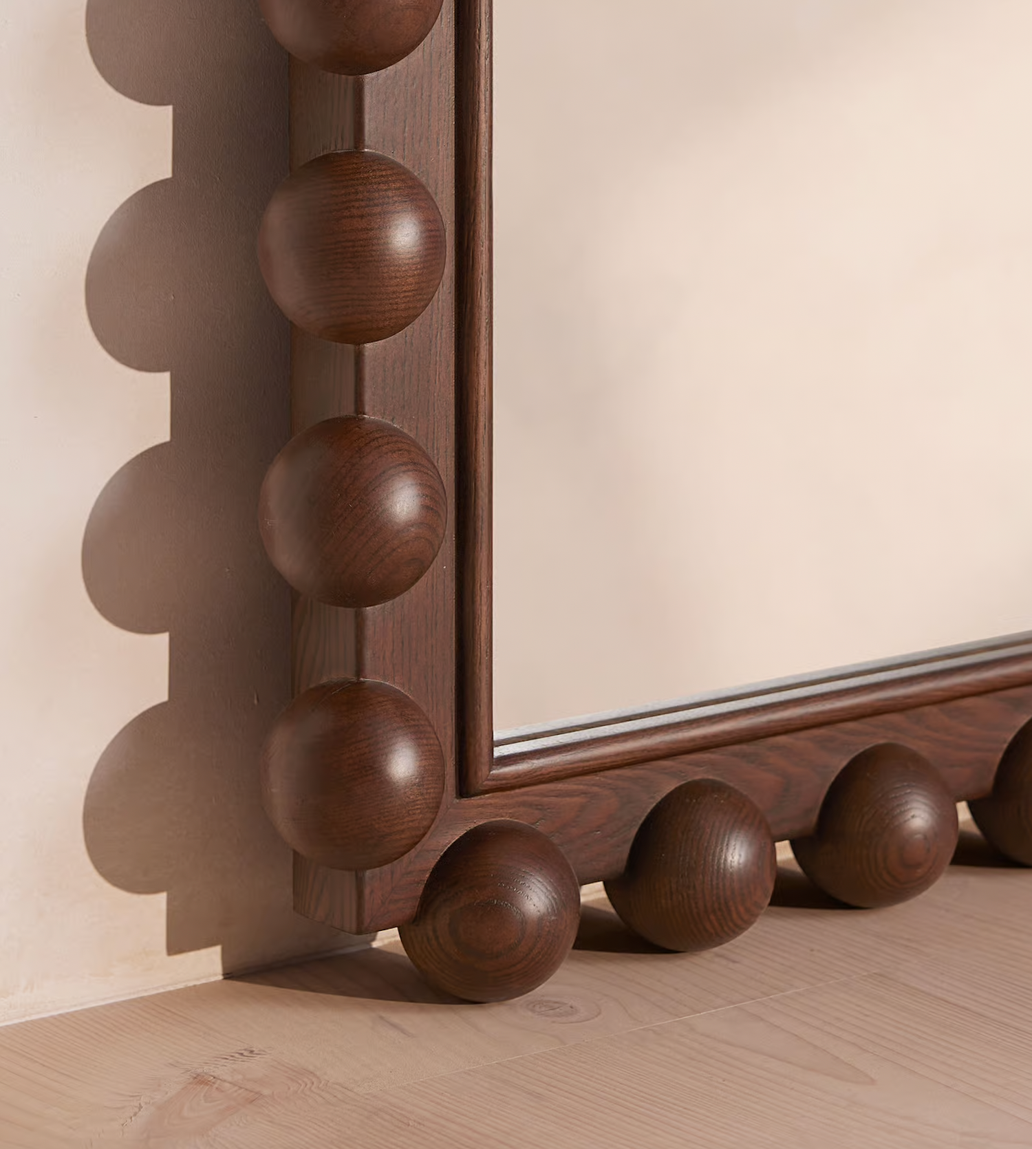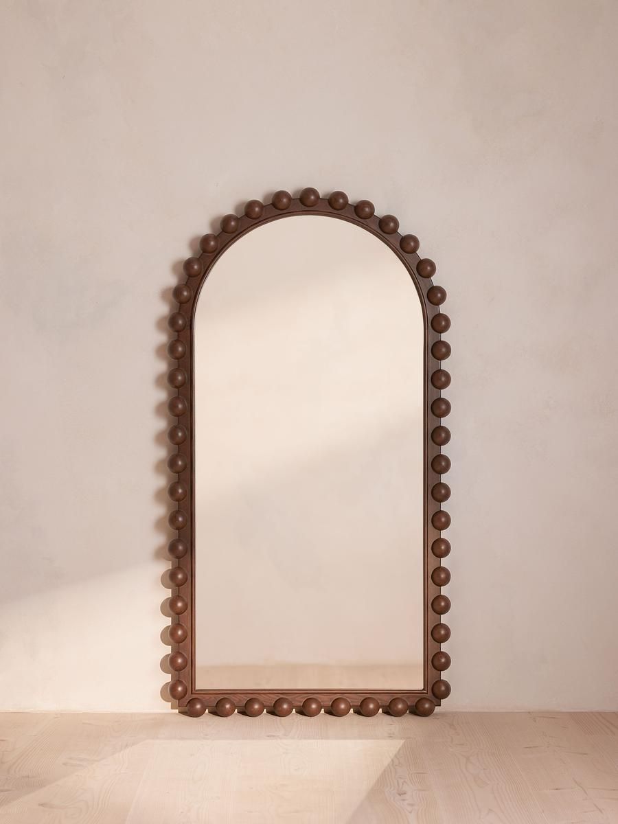 El işçiliği ile üretilmiş bu zarif ayna, doğal ahşap çerçevesi ve özenle işlenmiş torna detaylarıyla yaşam alanınıza sıcaklık ve sofistike bir dokunuş katar. Yüksekliği 195 cm, genişliği 100 cm ve derinliği 6 cm olan geniş yapısı sayesinde hem dekoratif hem de fonksiyonel bir kullanım sunar. Yuvarlatılmış kenar hatları ve doğal ahşabın sıcak tonları, modern ve klasik dekorasyon stilleriyle mükemmel uyum sağlar. Salon, antre veya yatak odasında şık bir odak noktası oluşturur.