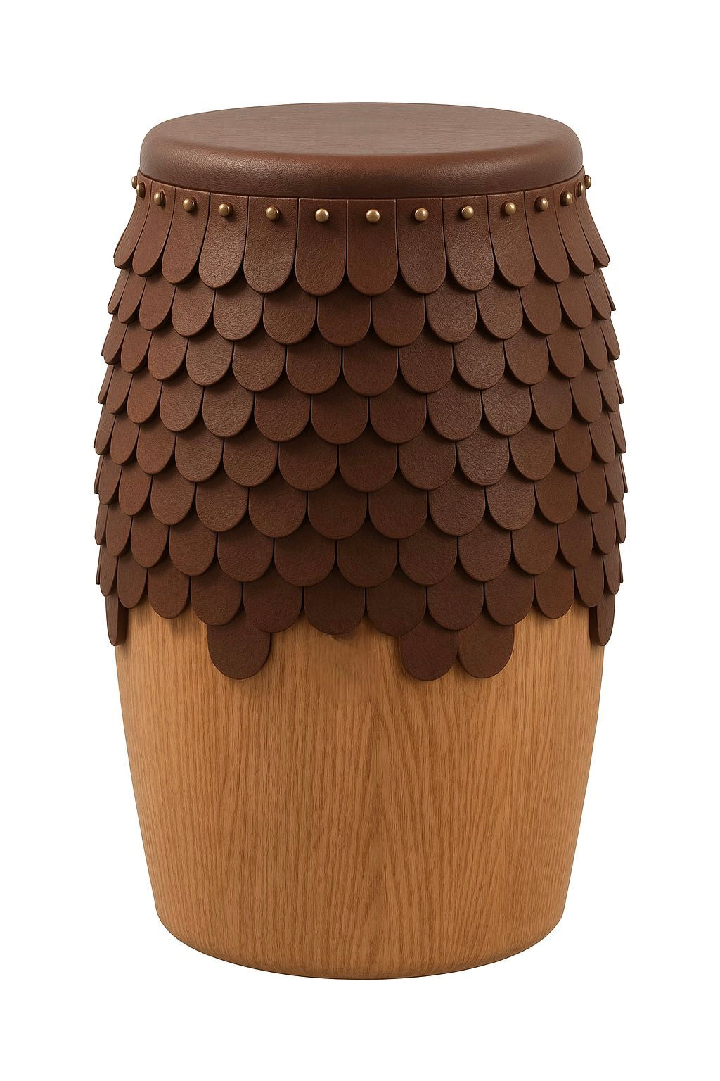 Doğal Ahşap Gerçek Deri Yan Sehpa / Tabure - Soho 612