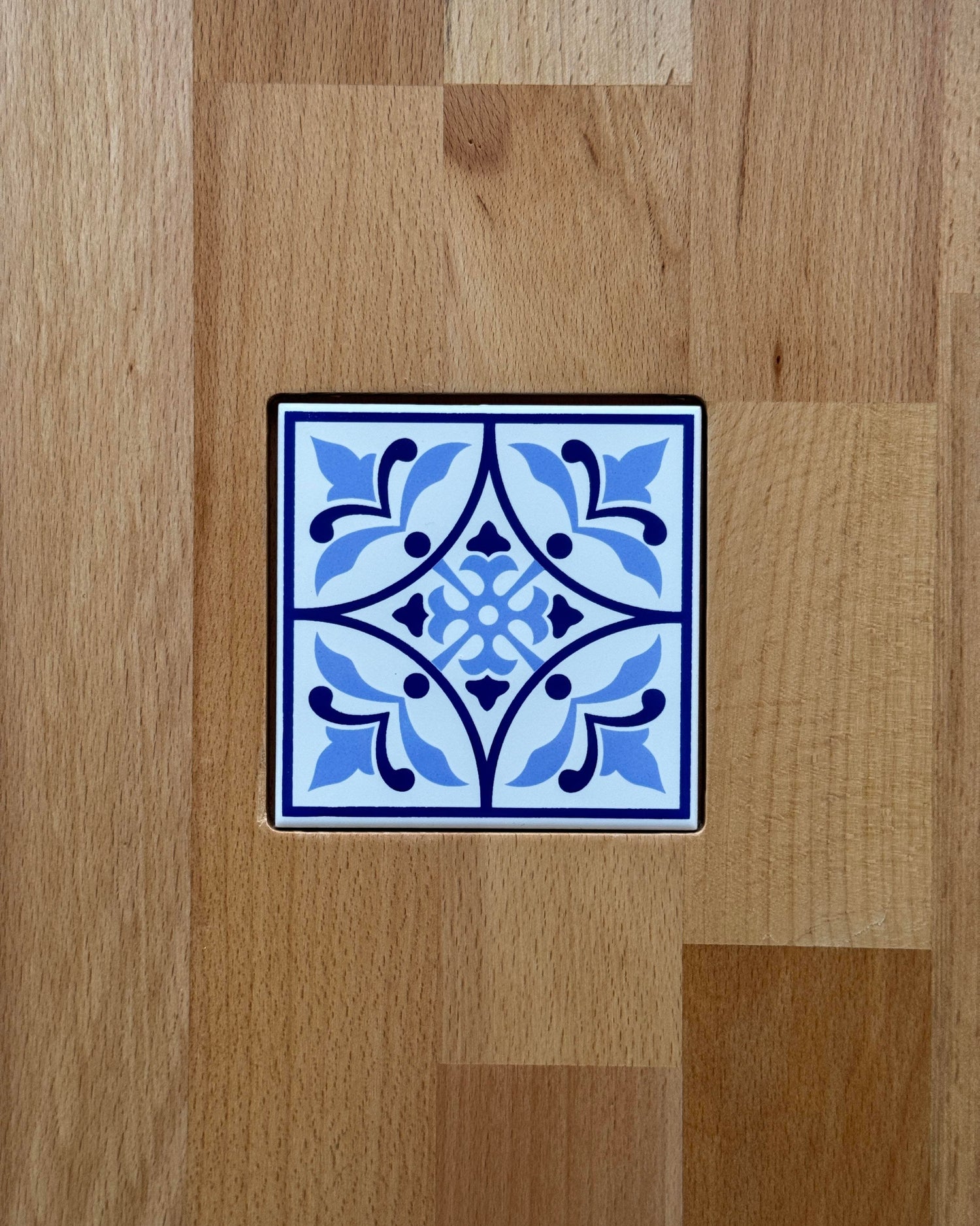 Malzeme: Doğal ahşap ve özel çini seramikler kullanılarak üretilmiştir.