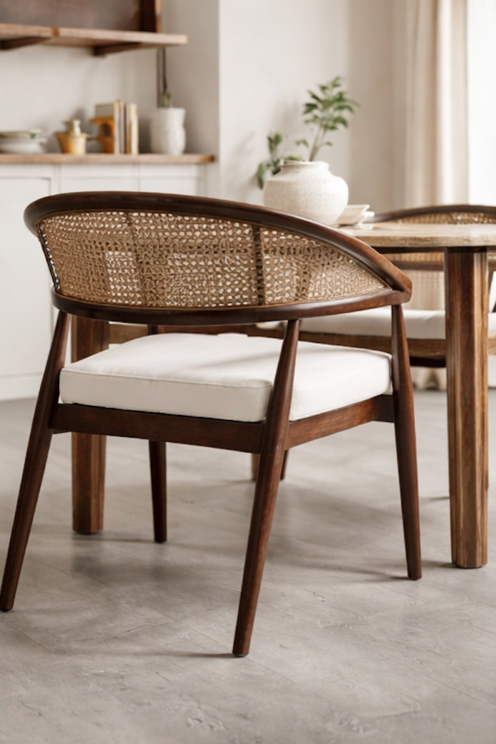 Doğallığı ve şıklığı bir araya getiren Doğal Ahşap Yemek Sandalyesi, evinizin yemek alanına zarif bir dokunuş katıyor.