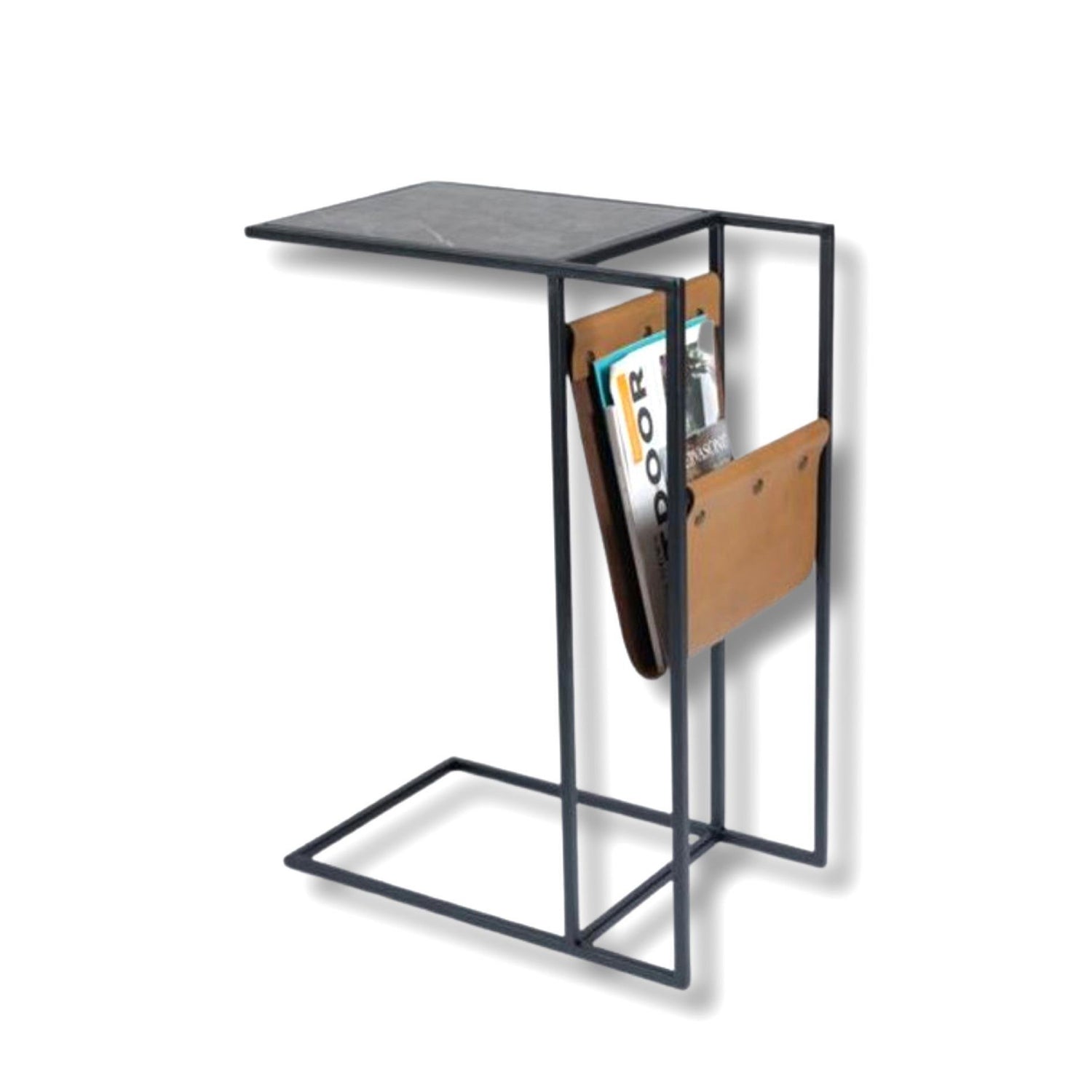 Doğal Mermer Deri Yan Sehpa - Soho 114