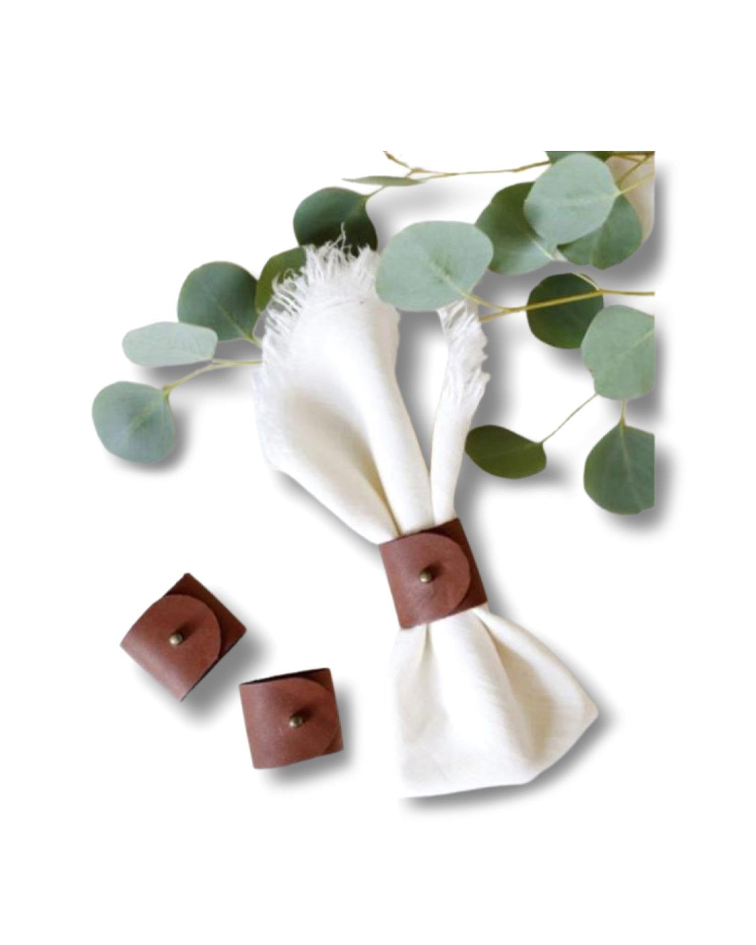 Bu set, 6 adet peçete halkası içermektedir ve her biri sofistike bir tasarıma sahiptir. Deri malzemesi, doğal tonları ve dokusu ile sofranızda dikkat çeken bir detay olacaktır. Gerçek deri, peçeteleriniz için güvenilir ve estetik bir tutuş sağlar.