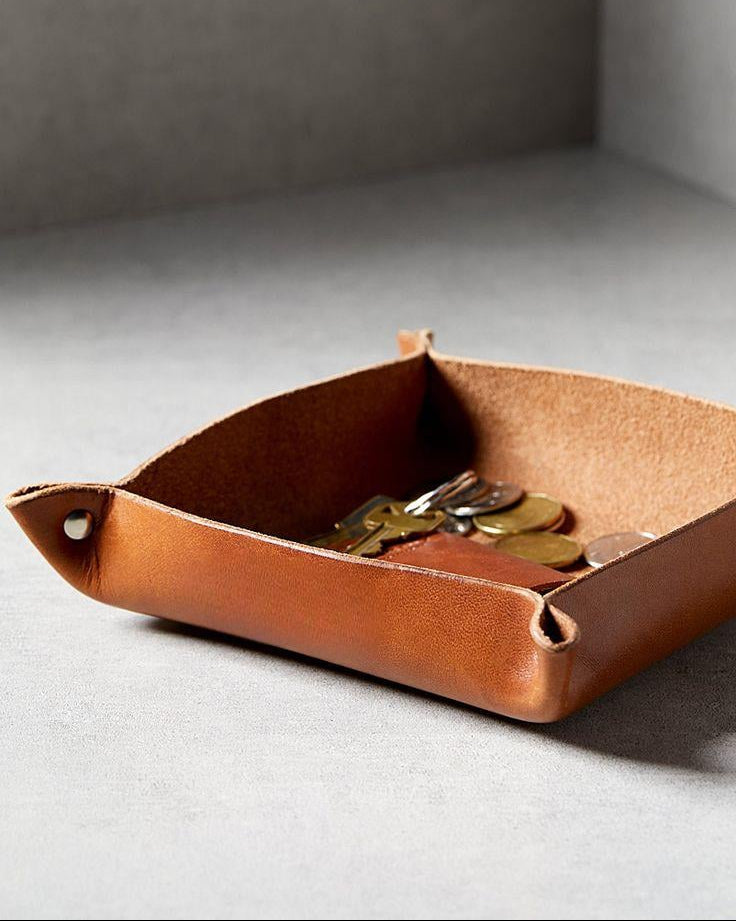 Gerçek Deri Cüzdan Anahtarlık Tepsisi, günlük yaşamınızı düzenlemek ve şıklığı evinize taşımak için mükemmel bir aksesuardır. Yüksek kaliteli gerçek deriden üretilmiş olup, her üründe doğal ton ve doku farkları barındırmaktadır. Bu özellik, tepsinizi benzersiz kılar ve el işçiliğinin zarafetini ortaya koyar.