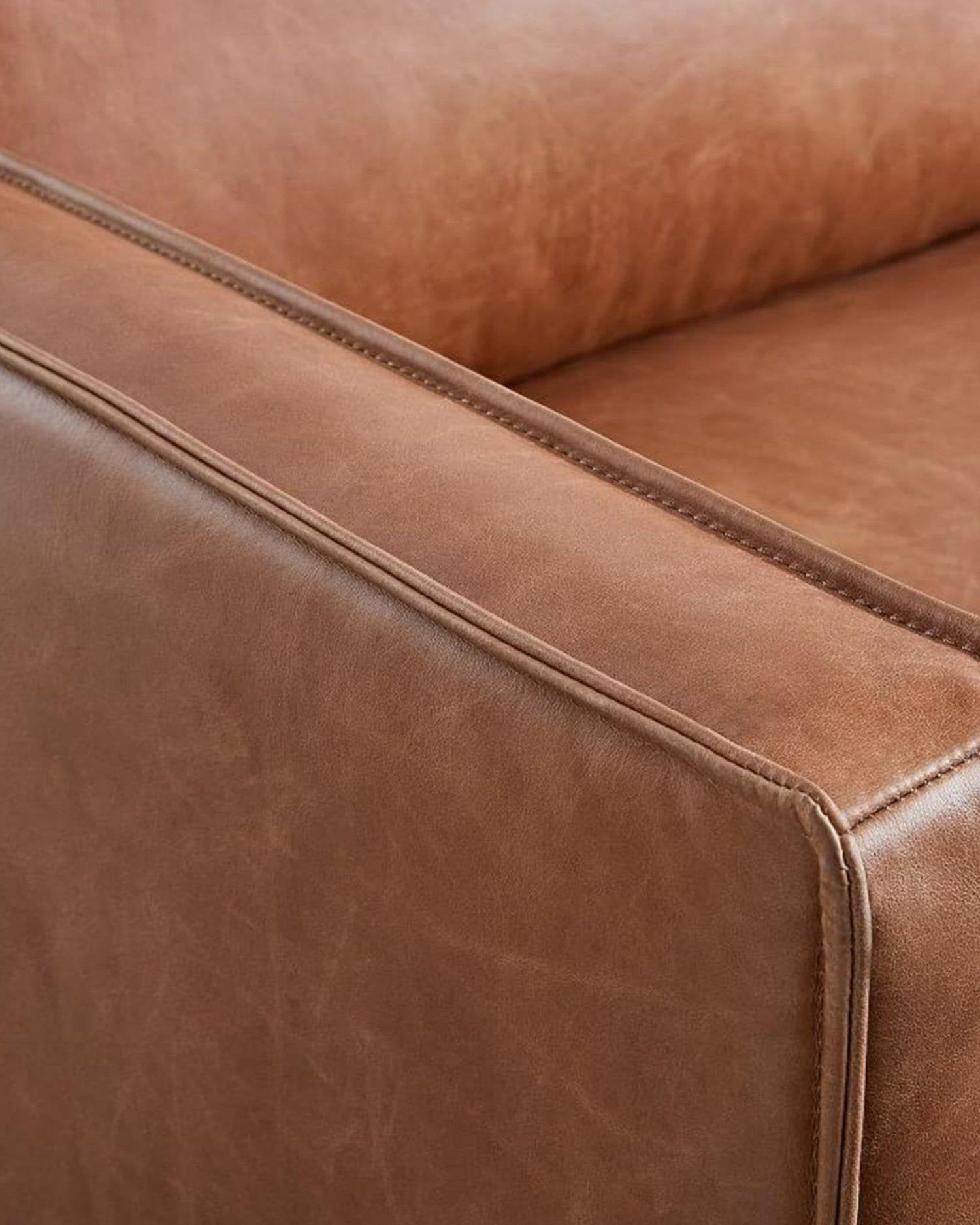 Ahşap iç iskeleti ve gerçek deri döşemesi, koltuğa dayanıklılık ve estetik bir görünüm kazandırır. Kahverengi tonlarındaki gerçek deri, sıcak bir atmosfer yaratırken, ahşabın doğal dokusu da ürüne özgün bir karakter katmaktadır.