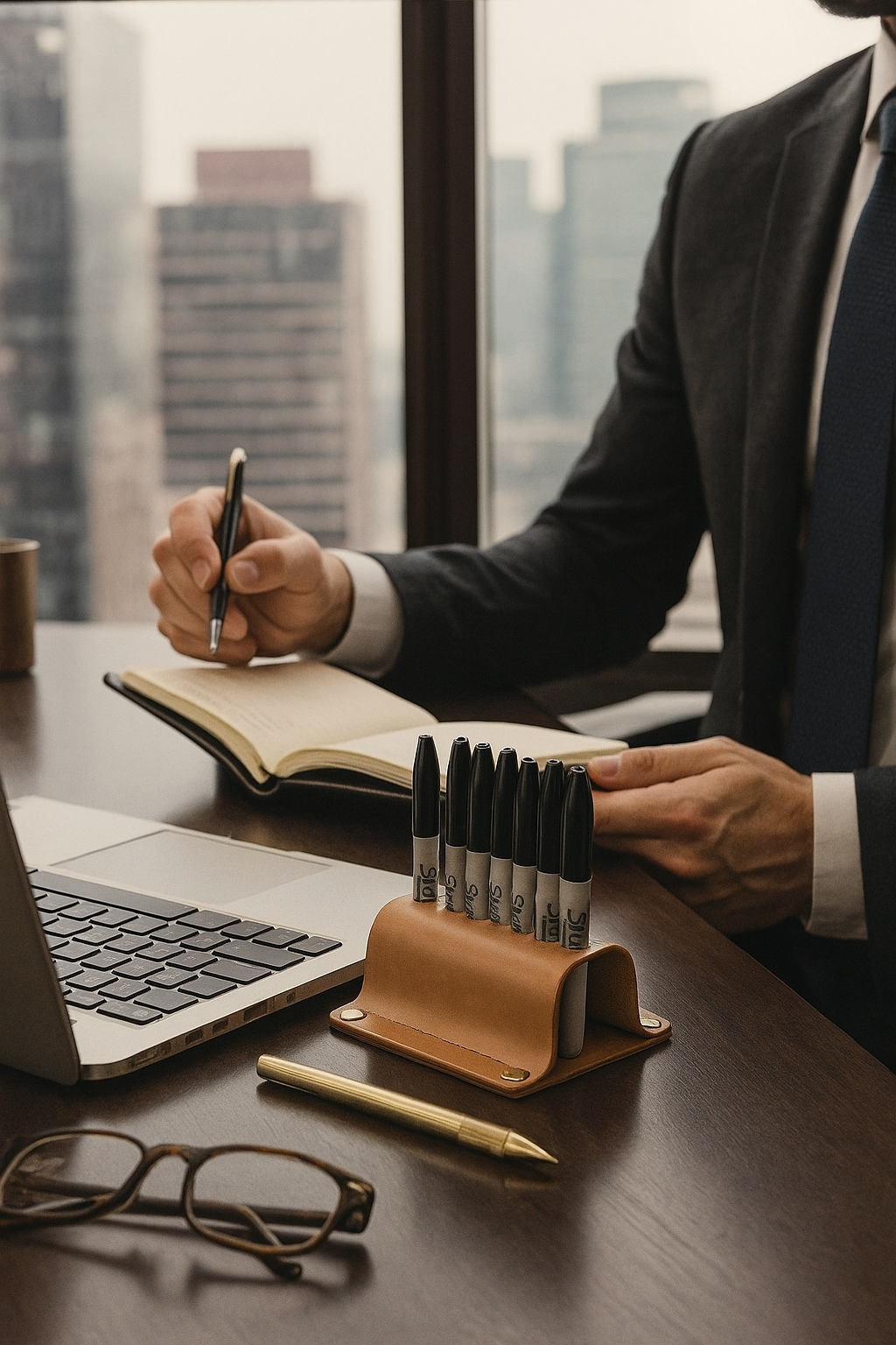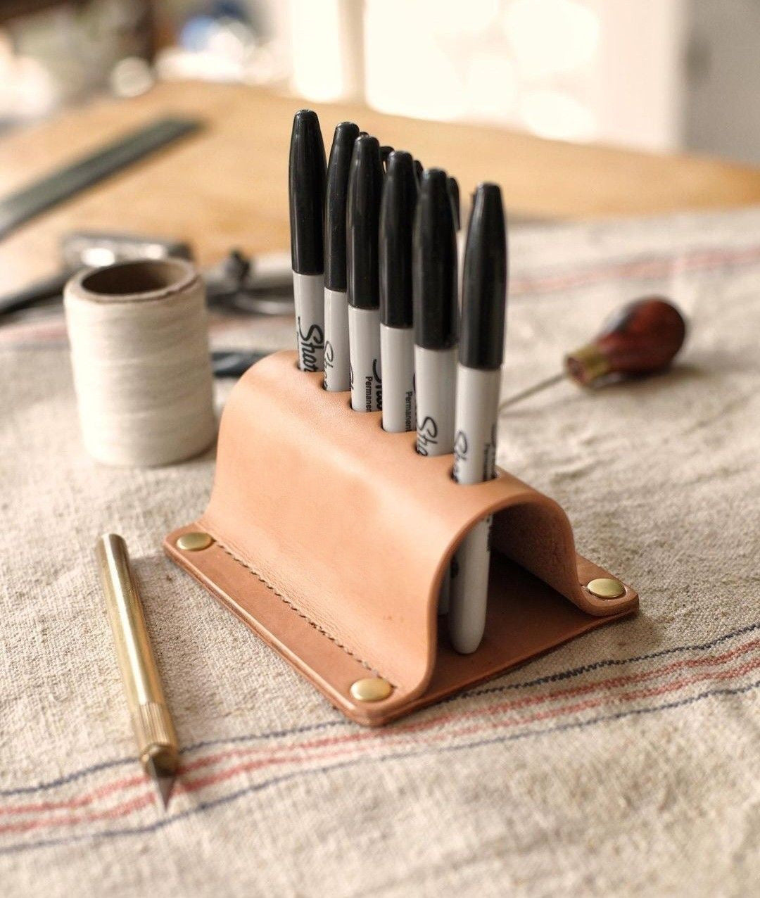 El işçiliğiyle üretilmiş bu doğal deri kalemlik, masa düzeninizi hem estetik hem de fonksiyonel bir şekilde tamamlıyor. Minimal formu ve sıcak tonlarıyla çalışma alanına sofistike bir hava katarken, dayanıklı yapısıyla uzun yıllar kullanım vadediyor.