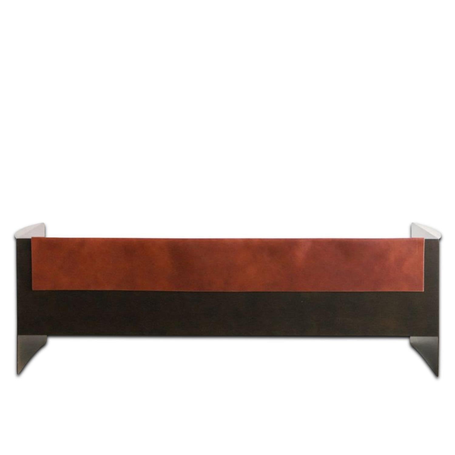 Modern ve şık tasarımıyla dikkat çeken Gerçek Deri Metal Bench, sağlam 3 mm kalınlığındaki metal iskeleti ve siyah fırın teksture metal boyasıyla öne çıkıyor. Üzerinde kullanılan gerçek deri, hem estetik bir görünüm sunar hem de uzun ömürlü bir kullanım sağlar.