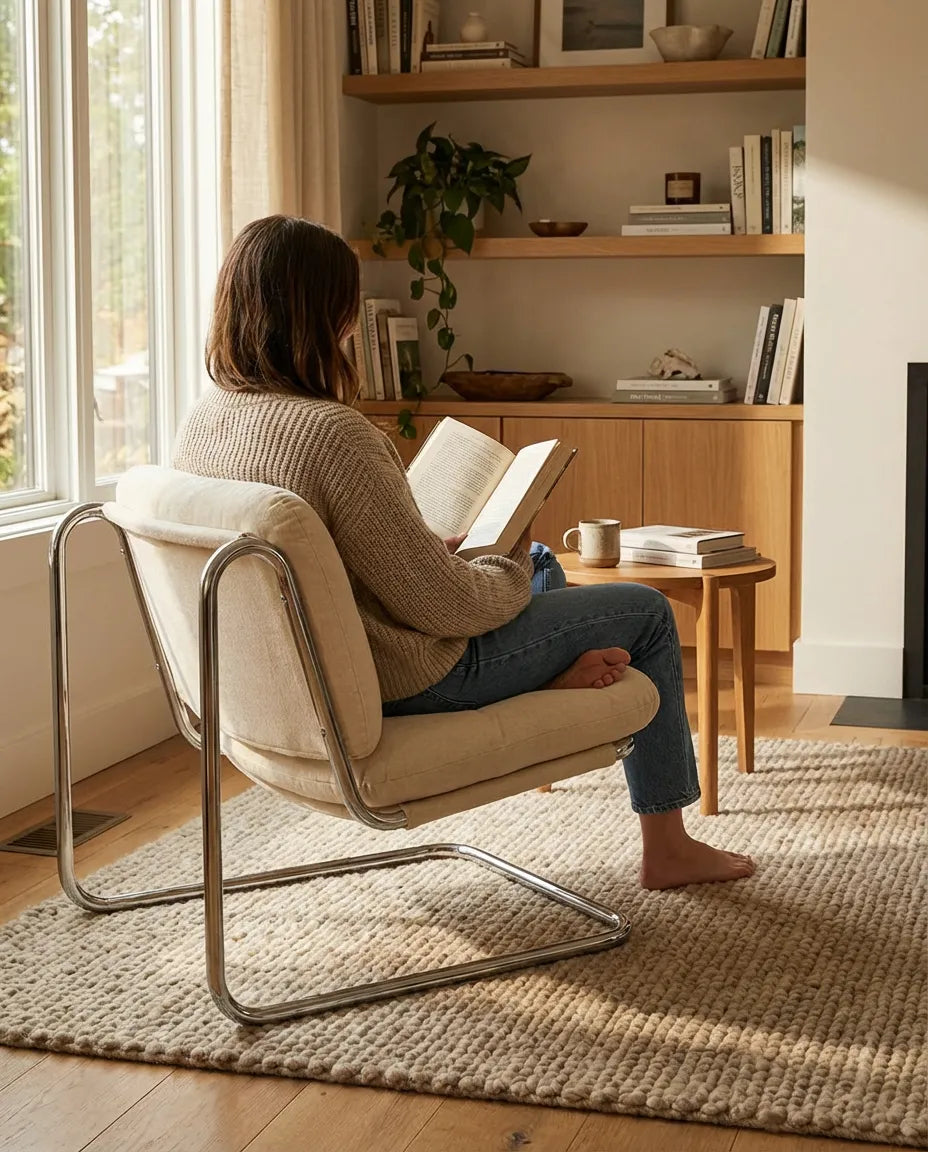 Minimal formlu tasarımı ve akıcı hatlara sahip kızak ayak yapısı sayesinde modern, endüstriyel ve çağdaş dekorasyon stillerine mükemmel uyum sağlar. Salon, ofis, bekleme alanı ve otel projeleri için şık bir tamamlayıcıdır.