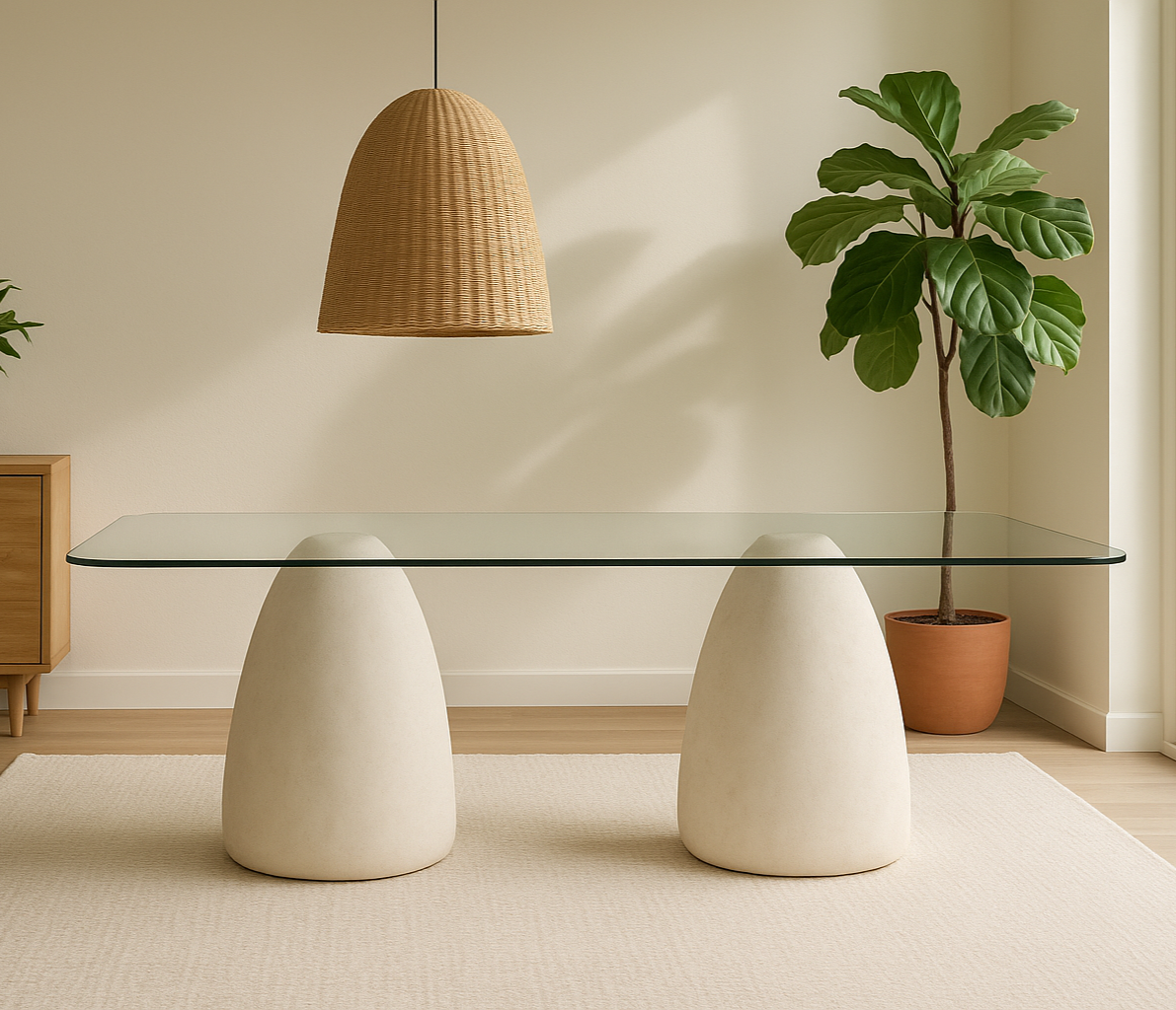 Doğanın dinginliğinden ilham alan Lumea Masa, yalın çizgileri ve zarif cam tablasıyla mekânınıza huzurlu bir denge getirir. İki heykelsi taş form üzerindeki şeffaf yüzey, ışığı ve ferahlığı içeri davet ederken, mekâna zamansız bir şıklık katar. Doğal dokularla modern minimalizmi buluşturan Lumea, yaşam alanlarınıza hem fonksiyonel hem de estetik bir merkez oluşturur.