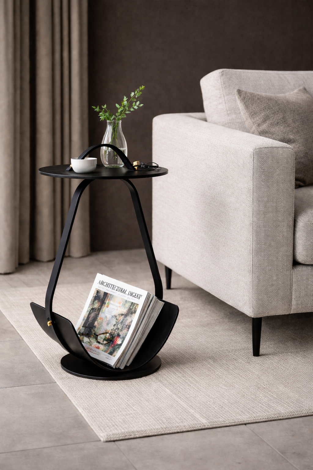 İskandinav sadeliğini ve zarif endüstriyel dokunuşları harmanlayan bu yan sehpa, az ama öz mobilyalarla sade yaşam felsefesini benimseyenler için ideal bir seçim.