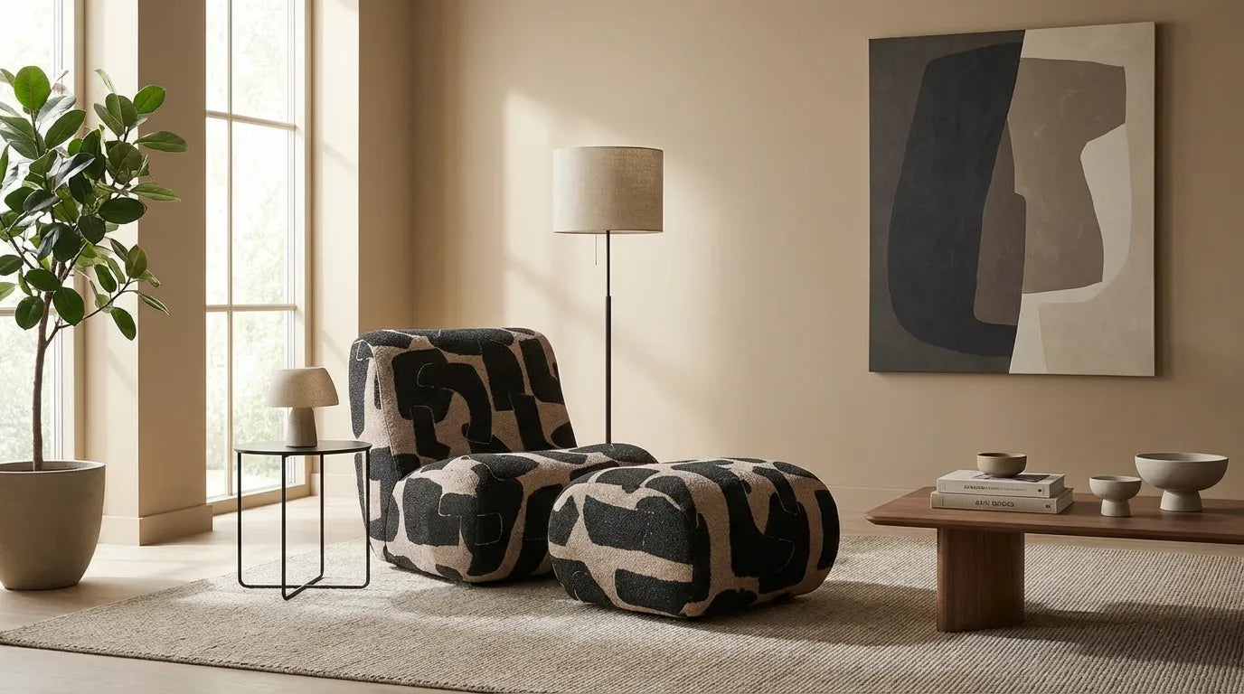 Modern tasarımı ve güçlü karakteriyle öne çıkan bu özel berjer, pufu ile birlikte konforu ve estetiği bir araya getiriyor. Yumuşak hatlara sahip akıcı formu, tek parça görünümü ve yere yakın tasarımı sayesinde mekâna modern ve heykelsi bir hava katar.