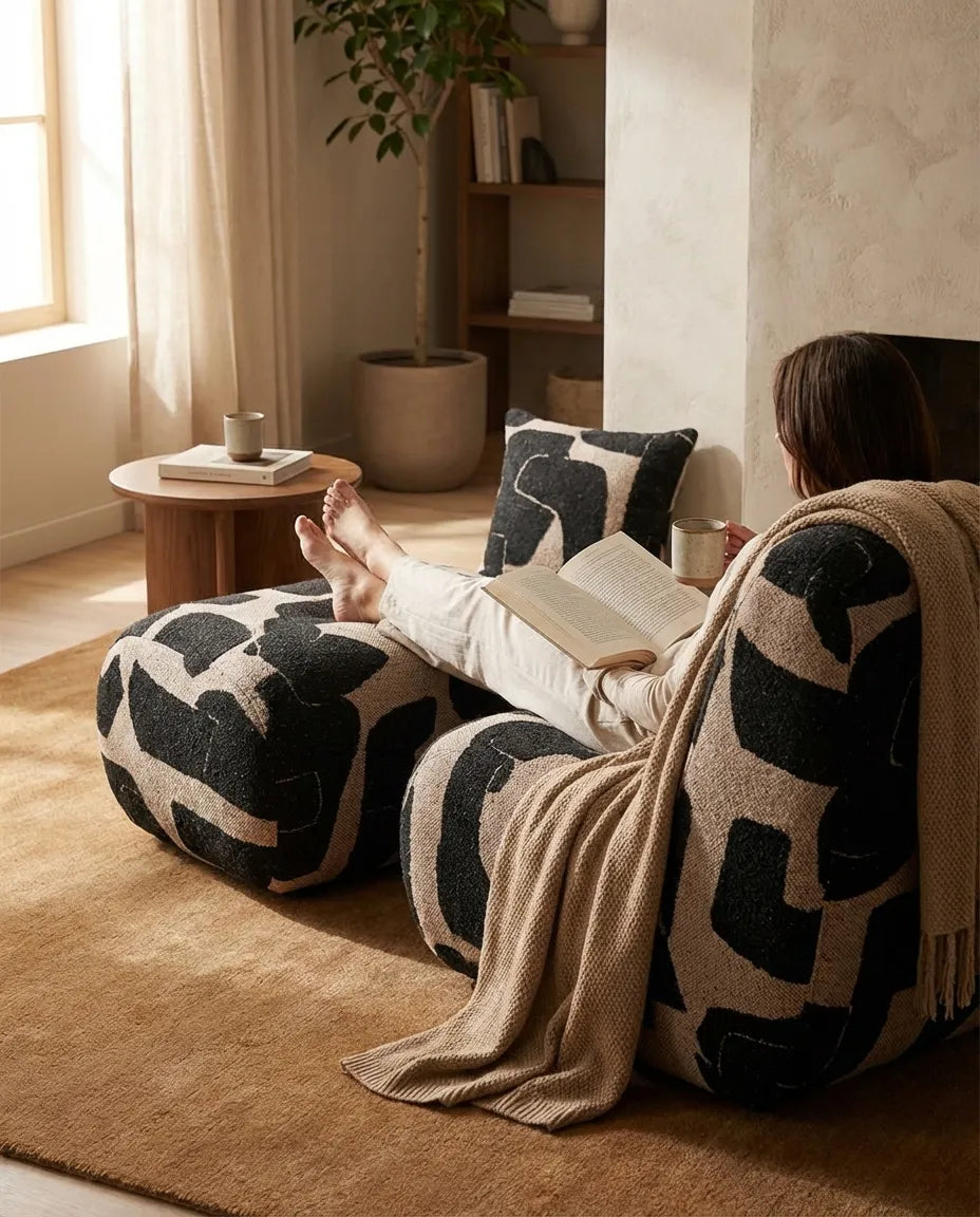 Özgün desenli döşemesi ile sıradan koltuk anlayışının dışına çıkan bu model, salon, oturma odası, yatak odası ya da lounge alanlarında rahatlıkla kullanılabilir. Geniş ve ergonomik oturum alanı sayesinde uzun süreli kullanımlarda yüksek konfor sunar.
