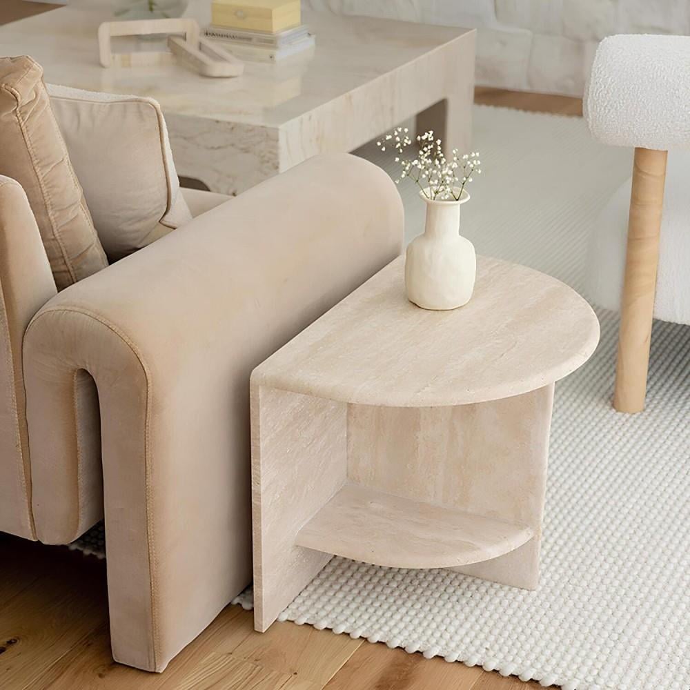 Doğal taşın zamansız estetiği ile üretilen traverten masalar, hem iç hem de dış mekanlarda sıcak ve sofistike bir atmosfer yaratır. Her biri doğanın benzersiz dokusunu taşıyan traverten yemek masaları, çalışma masaları ve yan masalar, doğal ve zarif bir dekorasyon arayanlar için idealdir.